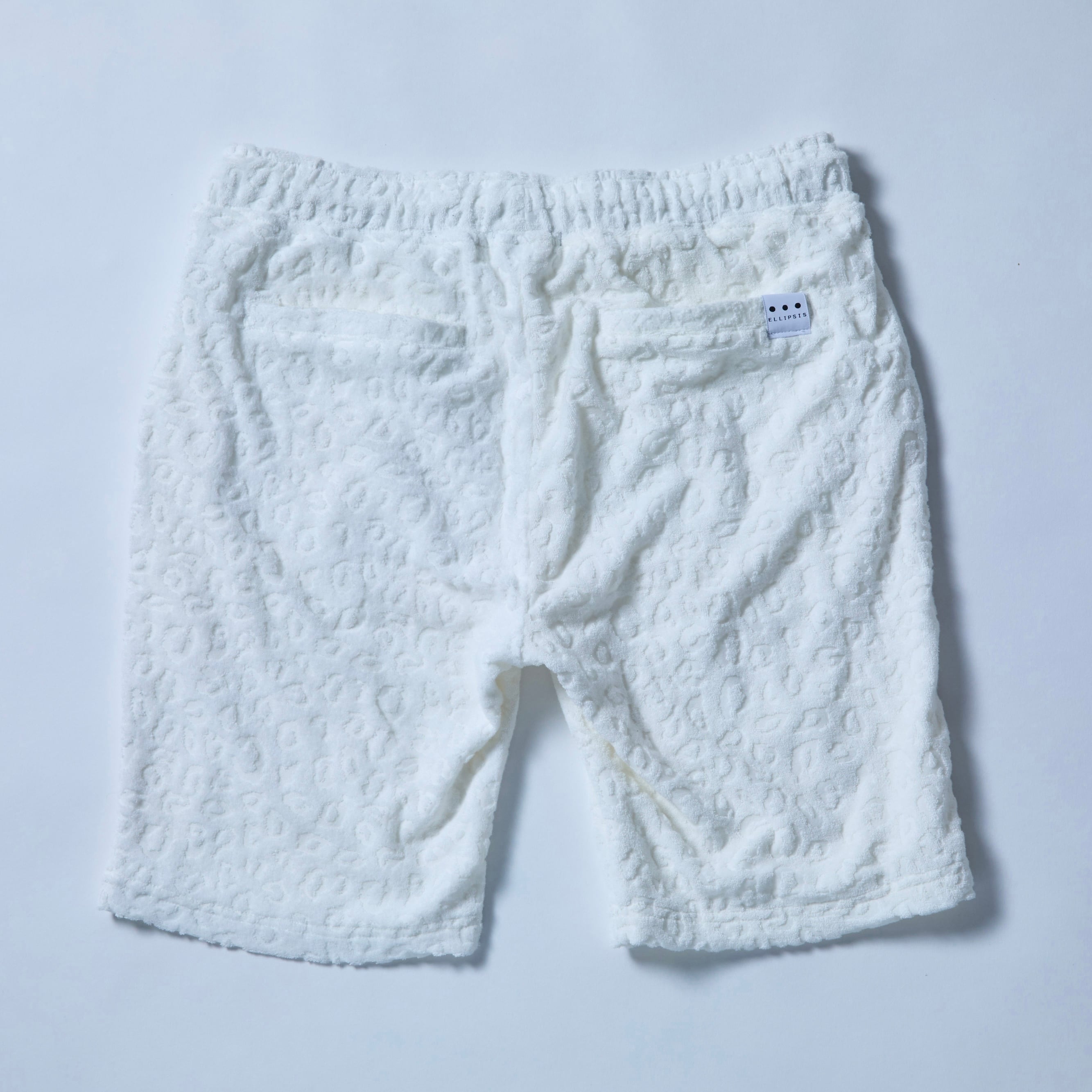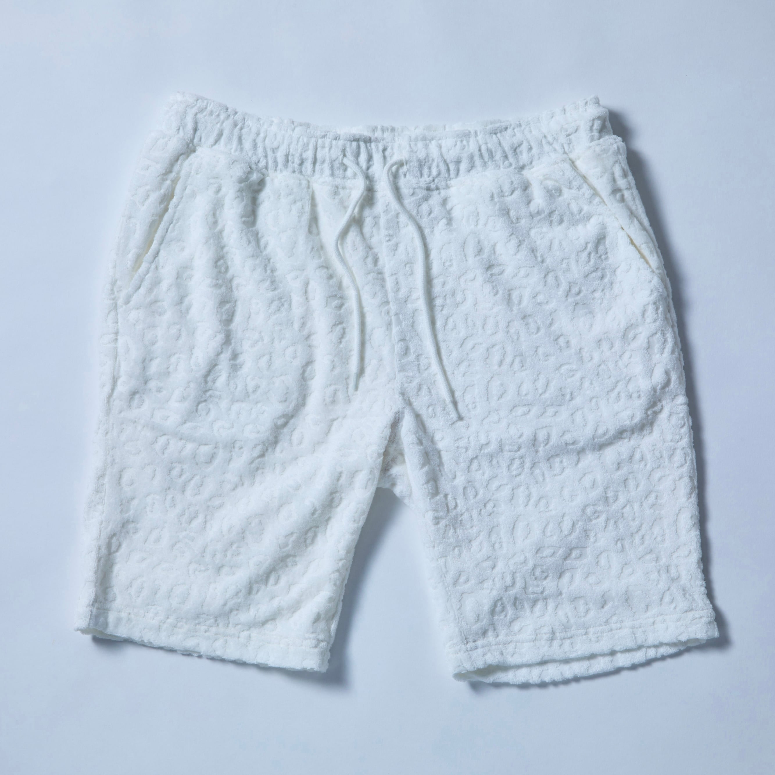 リラックスした休日を楽しむための必需品。柔らかく肌触りの良いパイル地は、まるでタオルのような心地良さ。ヒョウ柄の型押しが施されており、スタイリッシュな印象を与えます。同素材のシャツとセットで着用することで、リゾート感がさらにUP!海やリゾート地での特別なひとときにぴったりのアイテムです。