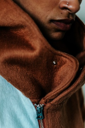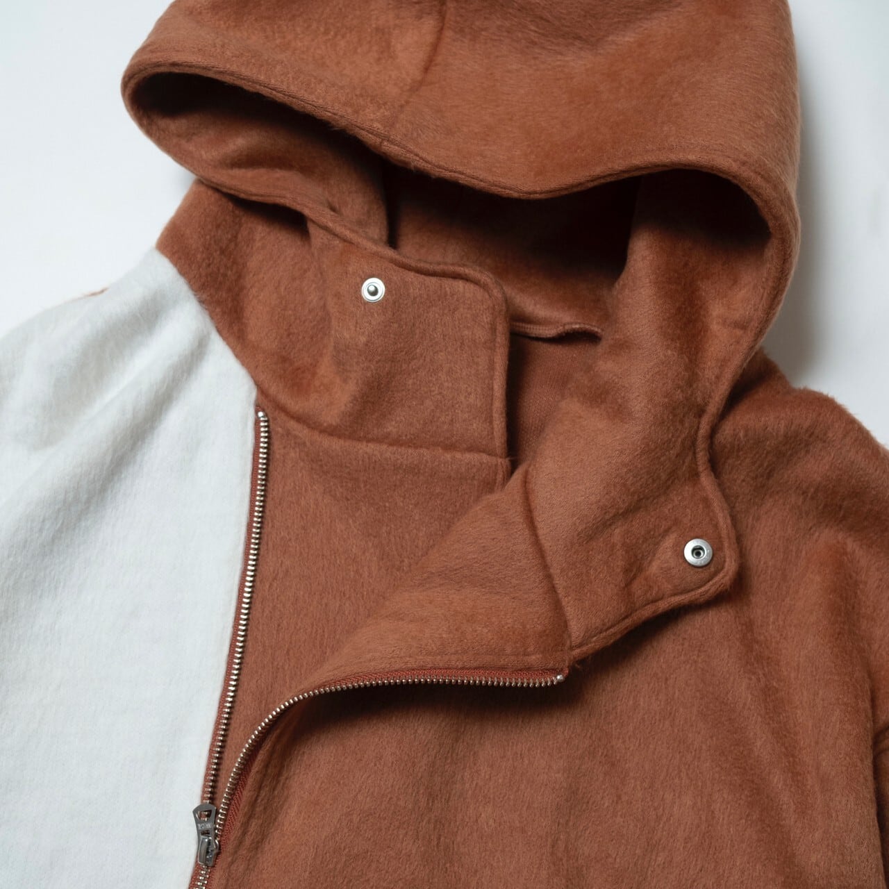 「イリップシスレベルジップパーカオレンジ」は、ライダースジャケットをモチーフにしたZIPフードパーカです。柔らかくて肌触りが良く、深めのフードが首元まで締まり、暖かさを提供します。2トーンの切り替えが特徴で、一枚でも十分なインパクトを与えます。